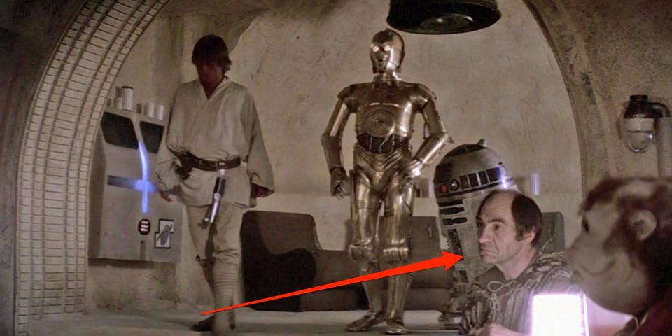 It’s where Luke Skywalker (Mark Hamill) and Obi-Wan Kenobi (Alec Guinness) find a pilot to take them to Alderaan. You guessed it — Han Solo (Harrison Ford).