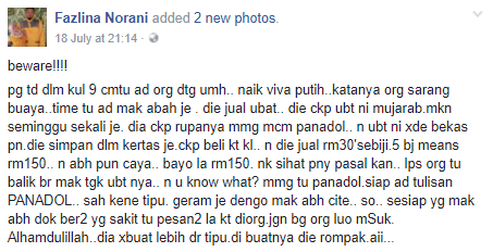 Malah lelaki tersebut menjual ubat tersebut dengan harga RM30 sebiji! Cekik darah betul! Berikut adalah perkongsian penuh oleh wanita tersebut.