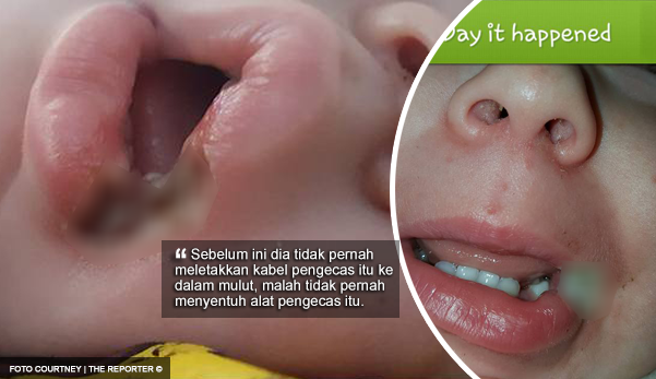 Sumber Mulut bayi melecur selepas memasukkan kabel pengecas telefon dalam mulut