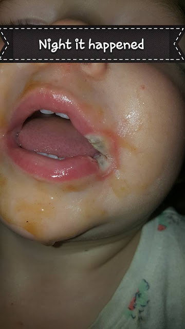 Mangsa kemudian dibawa ibunya ke pusat perubatan dan doktor mengesahkan bibir mangsa melecur dan tiada sebarang ubat yang dapat diletakkan pada bibir mangsa kerana bimbang akan dijilat oleh lidahnya.