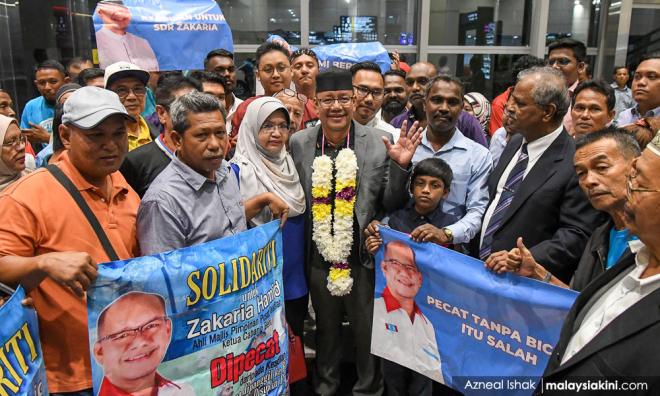 Dozens of supporters gathered at KLIA to greet sacked PKR member Zakaria Abdul Hamid who arrived from Taipei tonight.