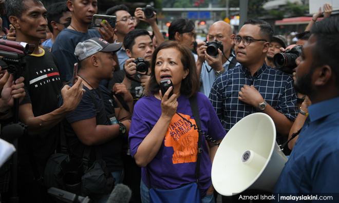Marina Mahathir was among more than 100 people who turned up in Kuala Lumpur this evening despite police warnings, to protest against the new Perikatan Nasional government which was installed through a coup.