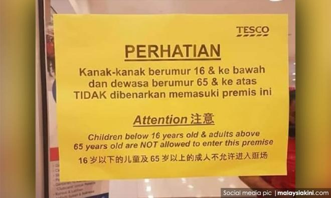 However, others have accused Tesco of age discrimination, while some voiced concern that the restriction would harm elderly people who live independently. - Mkini